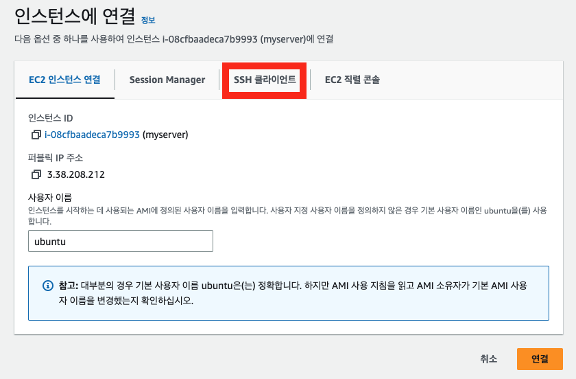 ssh -i "key.cer" ubuntu@ec2-3-38-208-212.ap-northeast-2.compute.amazonaws.com