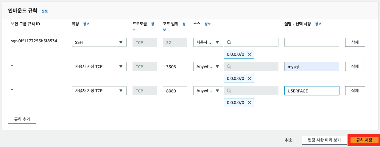 12.인바운드 규칙 편집 클릭