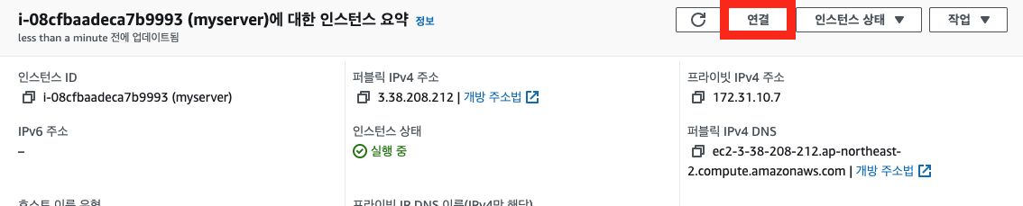 16.인스턴스 페이지 돌아가 연결버튼 클릭