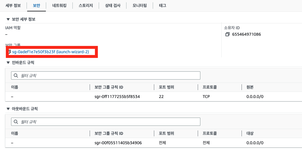 11.보안탭으로 가서 보안 그룹클릭