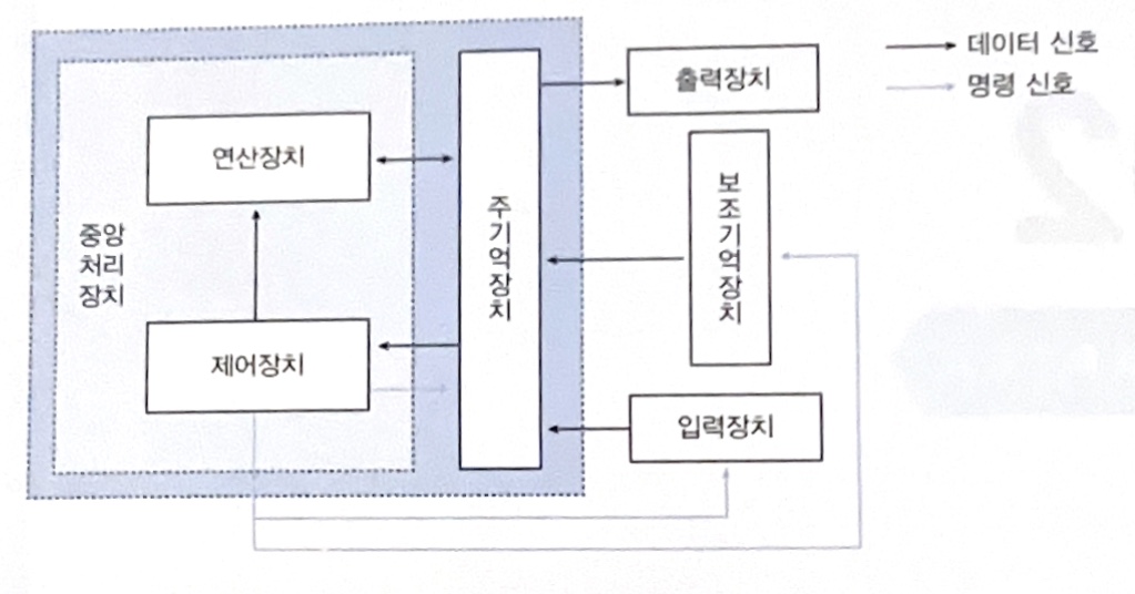 - 명령어 해석, 연산, 결과반환 -> 컴퓨터 시스템 통제하는 컴퓨터 제어장치