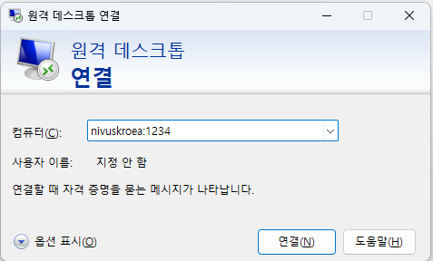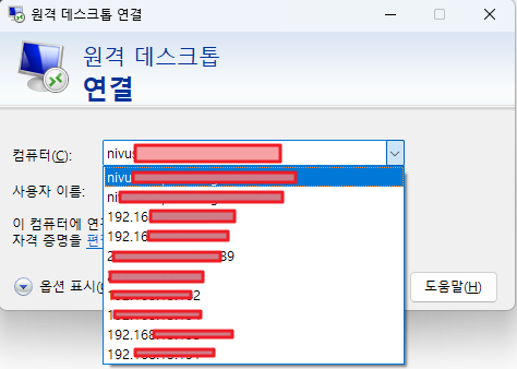 원격데스크톱을 열어주는 mstsc 실행 명령어를 사용했다