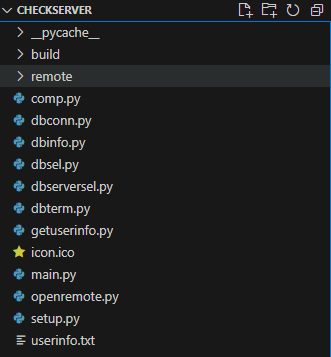 하나의 py파일에서 여러 모듈(py)을 import 해서 사용하는 경우 1. pip install cx_Freeze 설치해야함 2. setup.py생성후 내용작성해야함 3. 이후 터미널창에서 python setup.py build 입력하면 exe파일 생성됨 setup.py