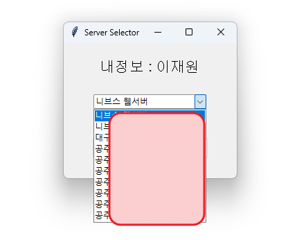 messagebox.showinfo(title="오류", message="올바른 서버를 선택하세요.")