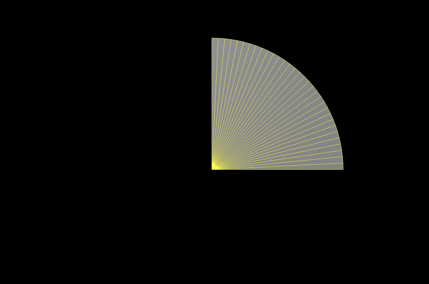 const geometry = new THREE.CircleGeometry(1, 32, 0, Math.PI / 2);