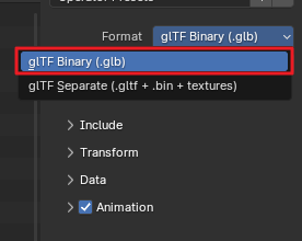 이번엔 glb 로 변경한다
