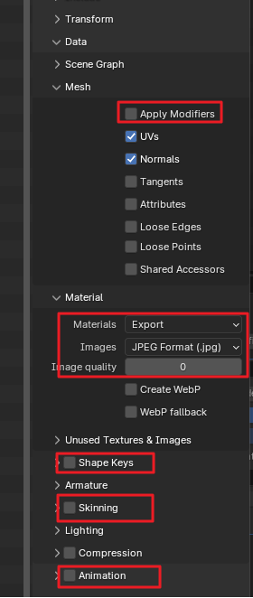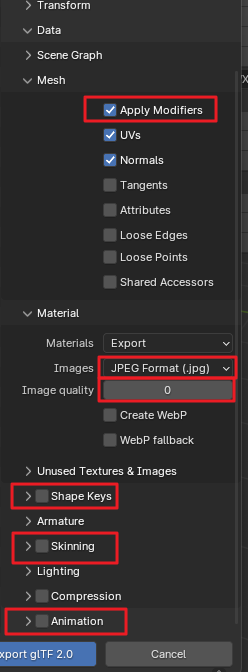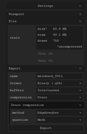 export에서 compression을 draco로 해서 한번더 압축해준다
