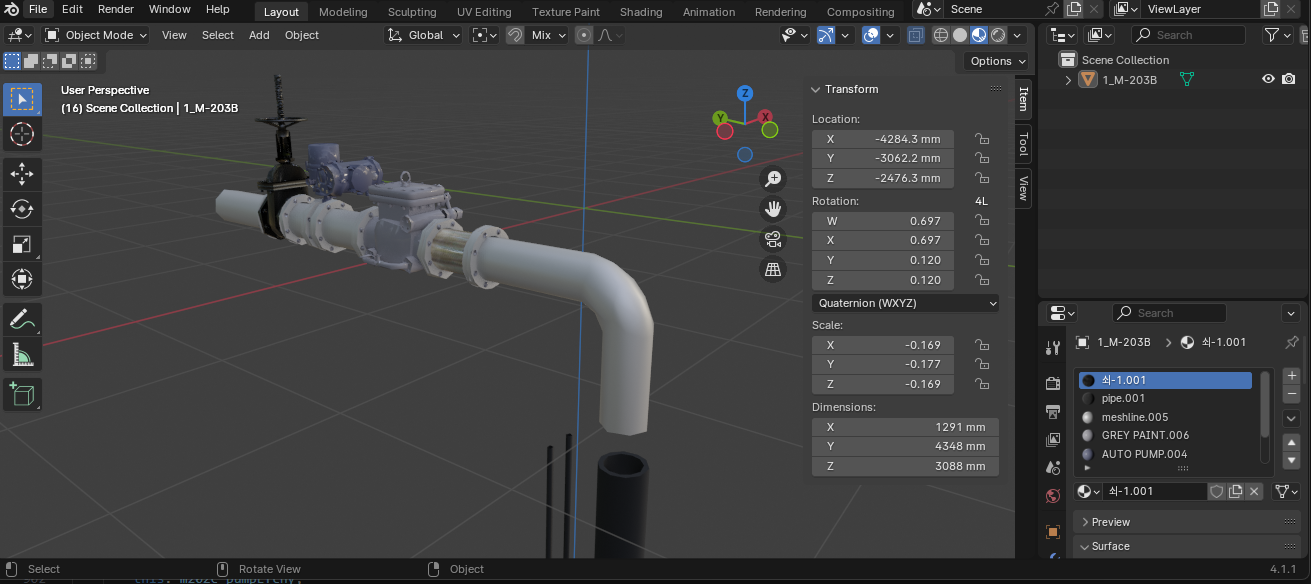새로운 블렌더 프로젝트에서 이 gltf 파일을 import 한다