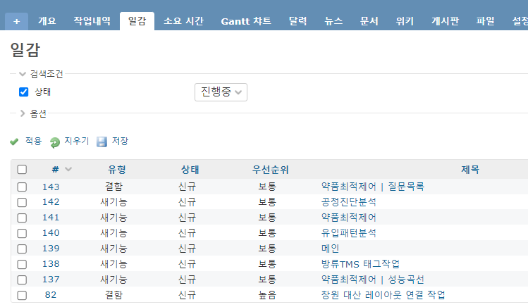프로젝트관리 툴로 Redmine을 사용했지만