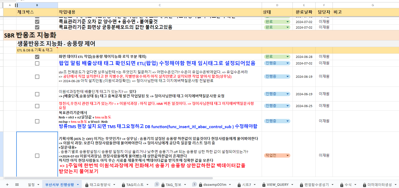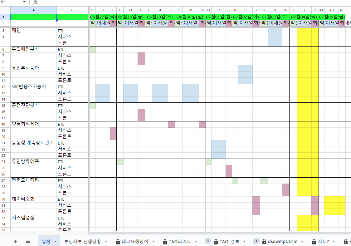 진행상황, 기획서, 태그정보, 테이블정의서 등