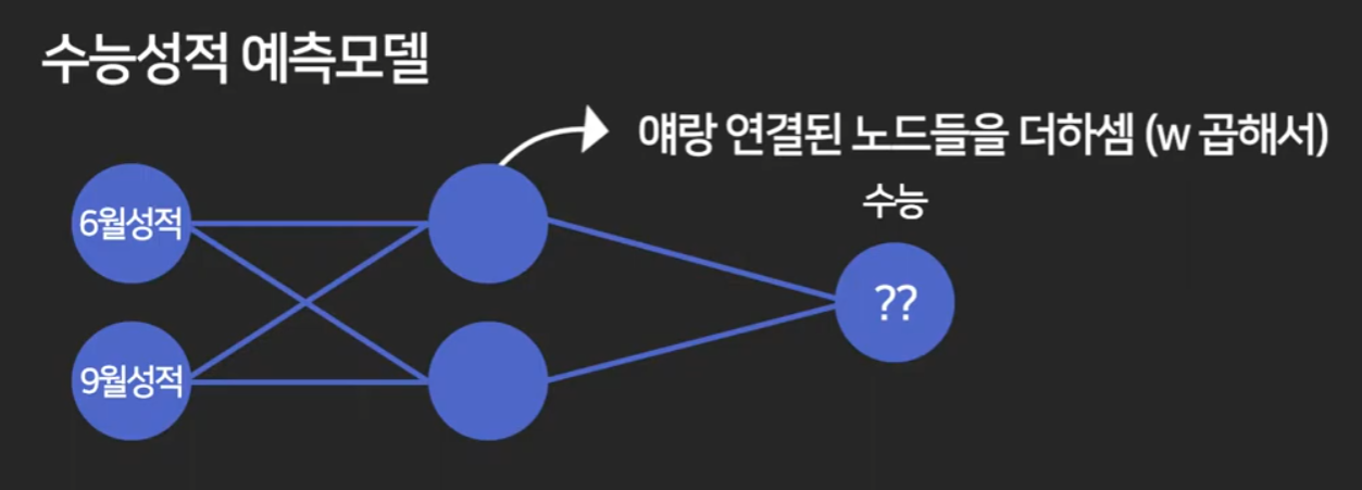 그 값을 어떻게 구하냐면 연결된 노드들을 w(weight가중치)곱해서 더하면된다