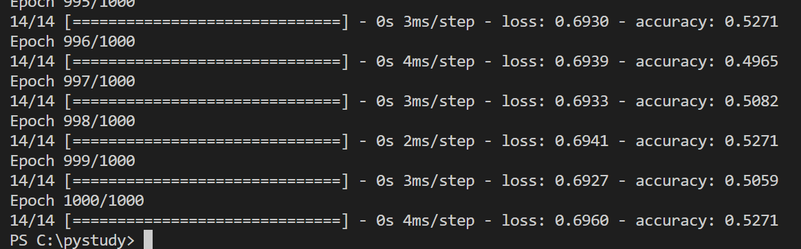 정확도가 낮으니 epoch를 1000으로 늘려보자