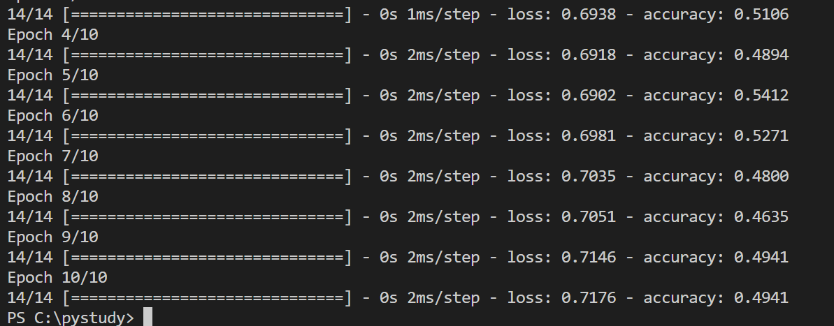 model.fit(np.array(x데이터), np.array(y데이터), epochs = 10)