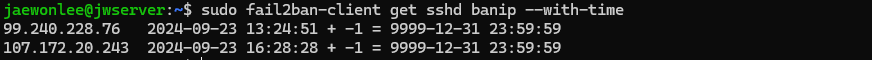 sudo fail2ban-client unban 해제할아이피
