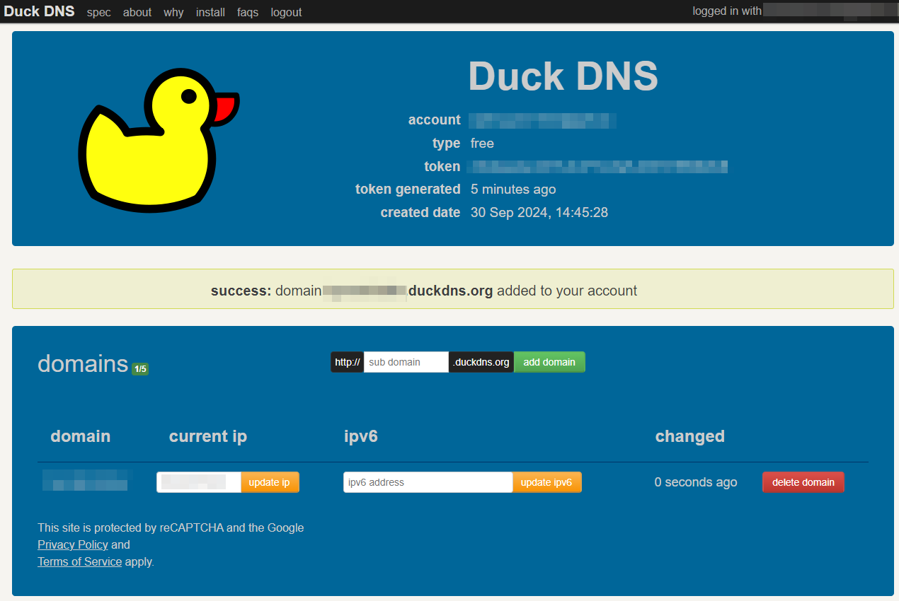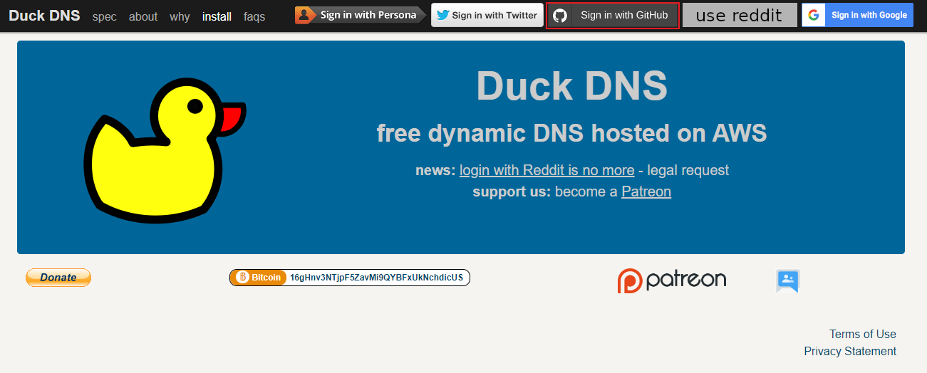 Duck DNS free dynamic DNS hosted on AWS news: login with Reddit is no more - legal request support us: become a Patreon
