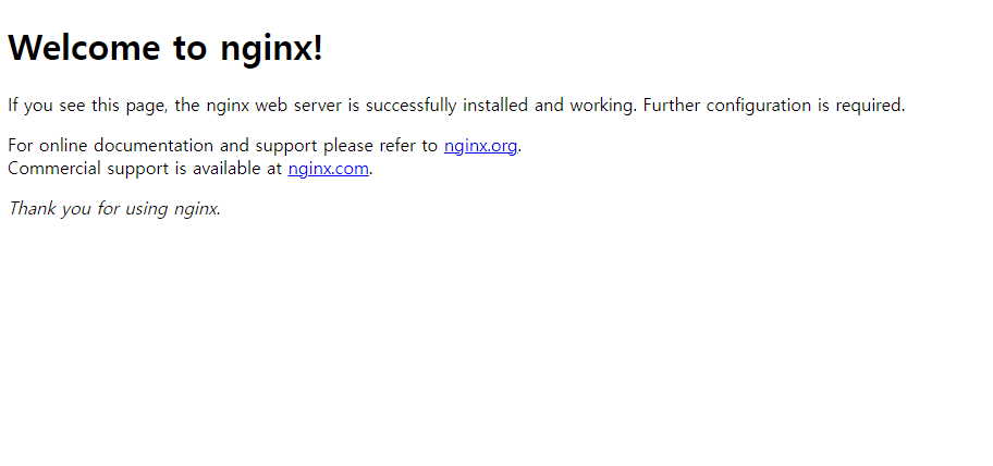 http://도메인 or 외부아이피:8080 에 접속하여 Nginx 의 환영 페이지를 볼 수 있습니다.