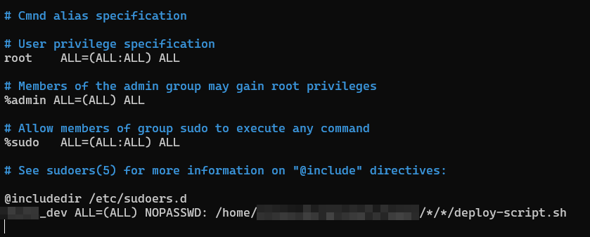 yourid ALL=(ALL) NOPASSWD: /myproject/*/deploy-script.sh