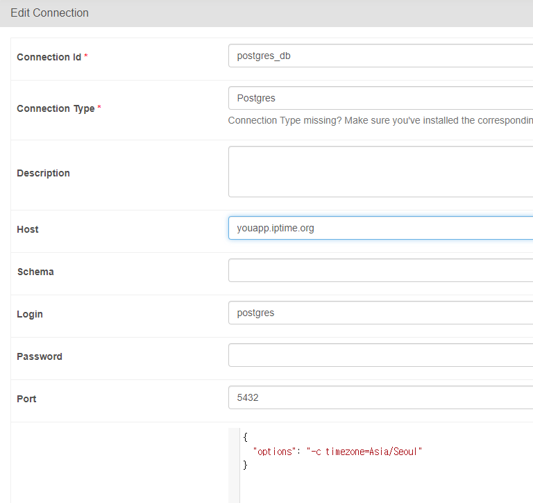 마찬가지로 작업전에 postgres connetion을 생성해야합니다.