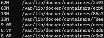 sudo find /var/lib/docker/containers/ -type f -name "*.log" -exec du -h {} + | sort -hr | head -n 10