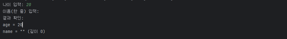 String name = sc.nextLine(); // 남아있던 '\n'을 바로 소비 => name은 ""