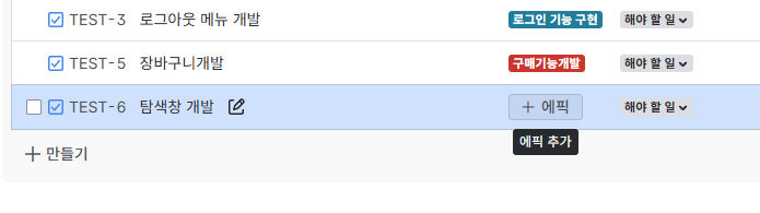 4. 백로그안에서 생성한 작업들을 관련 에픽으로 상위 항목 추가를 해준다.