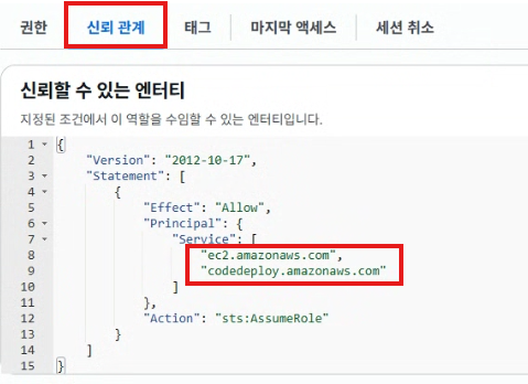 IAM > 엑세스 관리 > 역할 > Deploy관력 역할을 클릭해서들어가보면