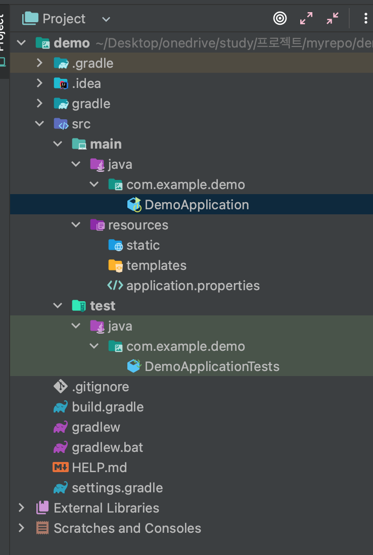 자동으로 main과 test가 생성된다