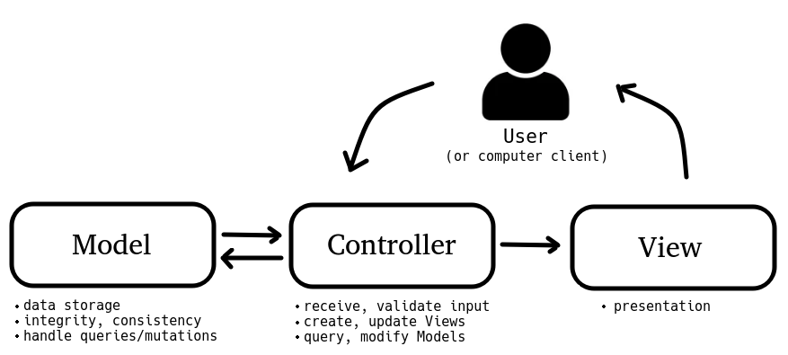 이러한 패턴을 성공적으로 사용하면, 사용자 인터페이스로부터 비즈니스 로직을 분리하여 애플리케이션의 시작적 요소나 그 이면에서 실행되는 비즈니스 로직을 서로 영향 없이 쉽게 고칠 수 있는 애플리케이션을 만들 수 있게 됨