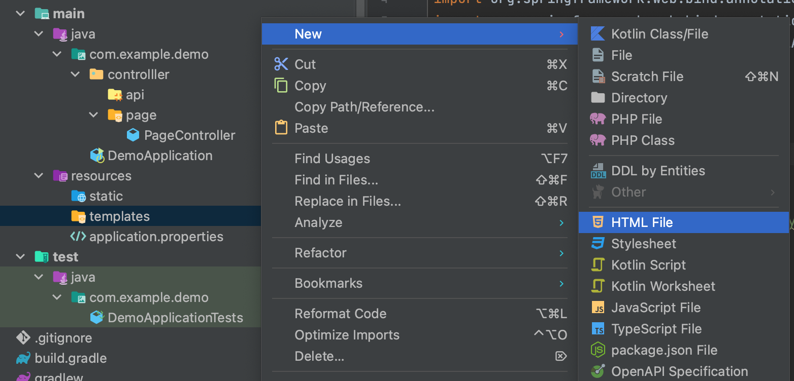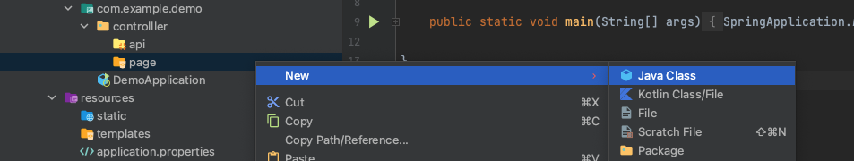 controller디렉터리를 우클릭하여 하위에 page디렉터리를 만들어보겠다