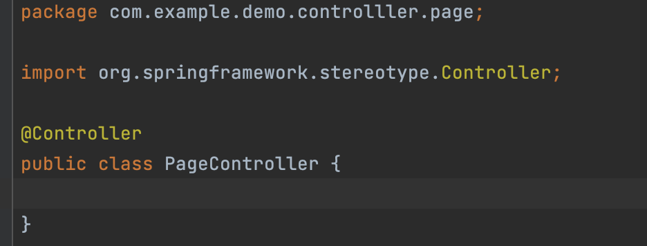 그리고 일반적으로 page controller는 빈문자열로 두거나 requestmapping 어노테이션을 생략하면된다.