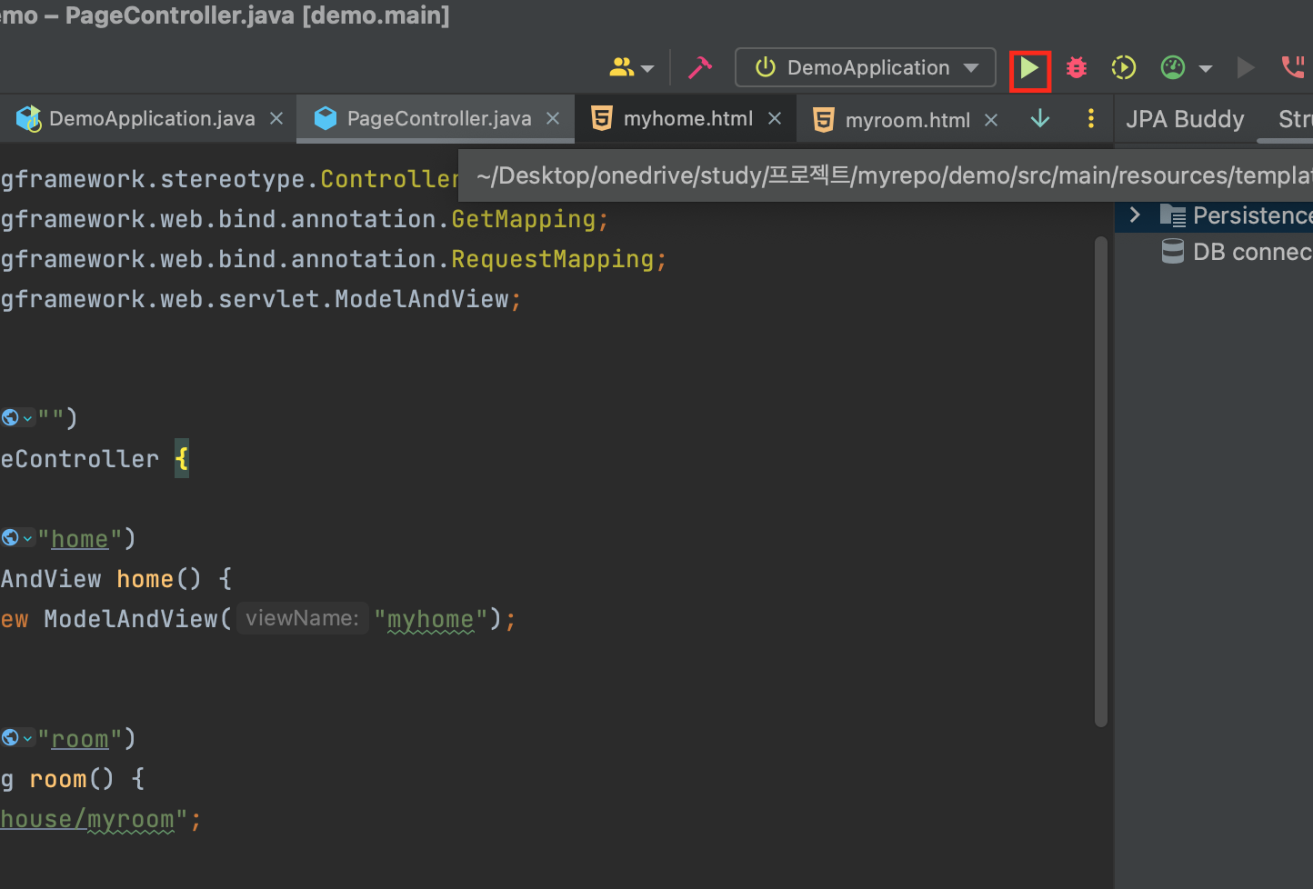 해당하는 뷰인 myhome.html과 house폴더 안에있는 myroom.html 파일을