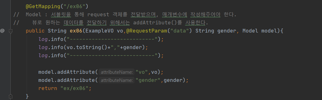 - Model or ModelMap에 데이터만 저장 후 View에서 사용할 목적