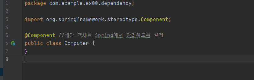 @Component 은 개발자가 직접 작성한 Class를 Bean으로 등록하기 위한 Annotation입니다.