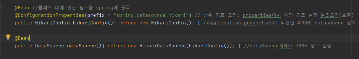 @Bean은 개발자가 직접 제어가 불가능한 외부 라이브러리등을 Bean으로 만들려할 때 사용되는 Annotation입니다.