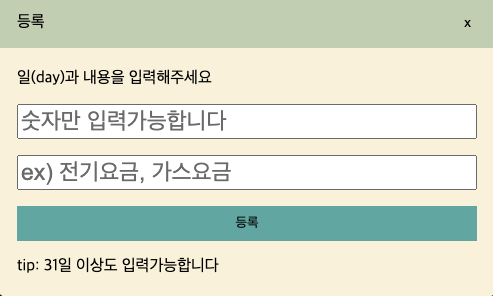 <p>일(day)과 내용을 입력해주세요</p>