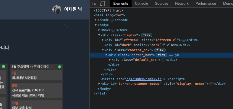 위 코드를 보면 <div> 태그를 유지하면서 템플릿 조각을 가져왔다.